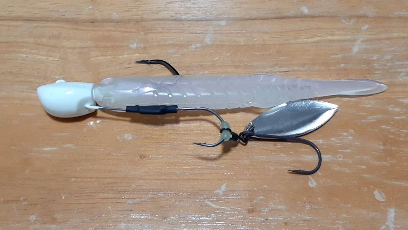 初めて釣った時は、ブレードに付けたアシストフックをしっかり咥えこんでいた。