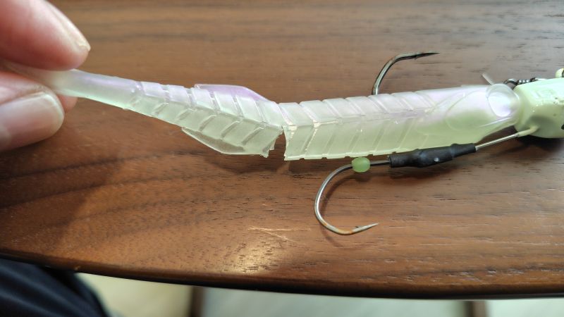 これなら後ろから尾をガブリといっても、アシストフックに掛かりそう。